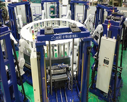 定子鐵心全自動(dòng)疊片機(jī),是我司應(yīng)中車(chē)電機(jī)客戶(hù)需求 潛心共同研發(fā)出的世界首臺(tái)適用于大型風(fēng)電行業(yè)的 電機(jī)疊片非標(biāo)設(shè)備。它將電機(jī)定子線(xiàn)圈疊片過(guò)程中的沖片搬運(yùn)、沖片分片、沖片疊裝、沖片槽樣棒整形定位的所有疊片工藝流程,均通過(guò)作業(yè)設(shè)備操作自動(dòng)完成,實(shí)現(xiàn)電機(jī)定子線(xiàn)圈疊片過(guò)程的自動(dòng)化作業(yè)。不僅生產(chǎn)效率高,同時(shí)節(jié)省大量的人力,降低生產(chǎn)成本,保障員工職業(yè)健康。大幅提高疊片質(zhì)量的同時(shí),通過(guò)后續(xù)對(duì)自動(dòng)供料、自動(dòng)吊裝等方面的研發(fā)及技術(shù)改進(jìn),能夠協(xié)助電機(jī)制造廠商不斷向著全自動(dòng)化生產(chǎn)線(xiàn)的方向發(fā)展。